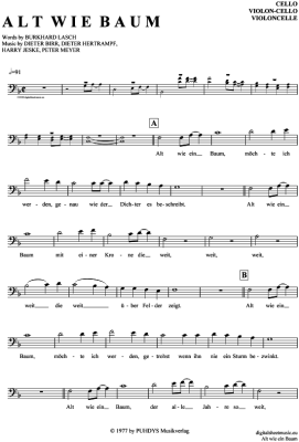 Alt wie ein Baum - Noten für Violon-Cello Puhdys