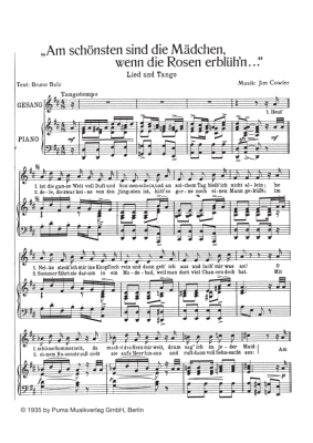 Am schönsten sind die Mädchen, wenn die Rosen erblühn - Noten für Klavier und Gesang Lied und Tango