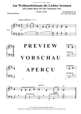 Am Weihnachtsbaum die Lichter brennen - Noten für Klavier Solo Traditional