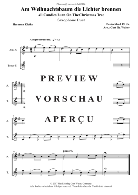 Am Weihnachtsbaum die Lichter brennen - Noten für Saxophon Duett Traditional