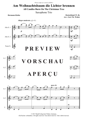 Am Weihnachtsbaum die Lichter brennen - Noten für Saxophon Trio Traditional