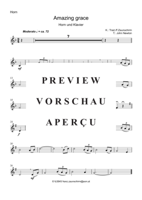 Amazing Grace (Horn Solo + Klavier-Playback) - Noten für Horn in F + Klavier Traditional (Zaunschirm)