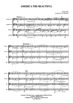 America the Beautiful - Noten für 2xTrompete in B, Horn in F, Posaune Traditional