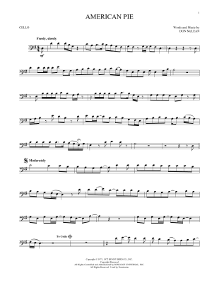 American Pie - Noten für Violoncello Don McLean