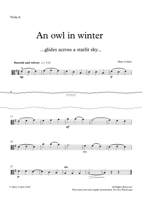 An Owl In Winter - Noten für Viola Mary Cohen
