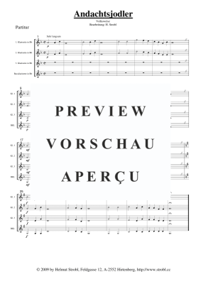 Andachtsjodler - Noten für Klarinettenquartett Traditional