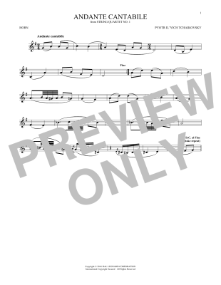 Andante Cantabile - Noten für Horn Pyotr Il'yich Tchaikovsky