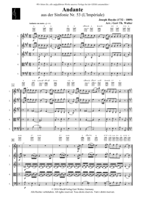 Andante (aus der Sinfonie Nr. 53 (L´Imperiale)) - Quintett (arr. Gert Walter)