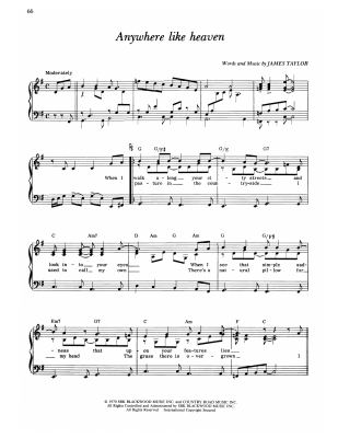 Anywhere Like Heaven - Noten für Gesang, Gitarre, Klavier James Taylor
