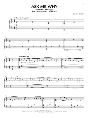 Ask Me Why (Mother's Message) (from The Boy And The Heron) - Noten für Klavier Joe Hisaishi