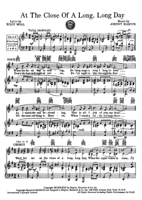 At The Close Of A Long, Long Day - Noten für Klavier und Gesang Johnny Marvin