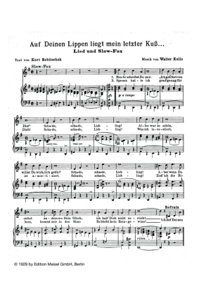 Auf Deinen Lippen liegt mein letzter Kuss - Noten für Klavier und Gesang Lied und Foxtrott