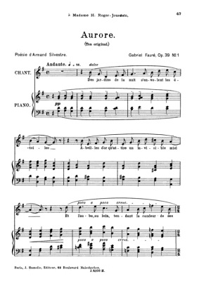 Aurore Op.39 No.1 - Noten für Gesang hoch und Klavier Gabriel Fauré