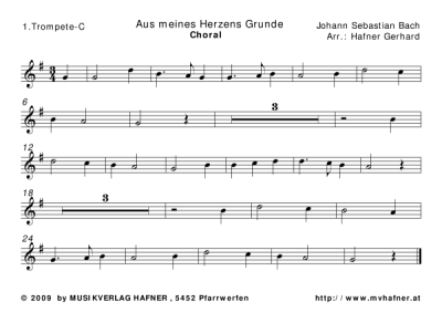 Aus meines Herzens Grunde - Noten fĂŒr BlechblĂ€ser Quintett Johann Sebastian Bach