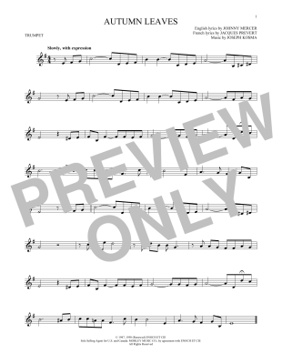 Autumn Leaves - Noten für Trompete Joseph Kosma