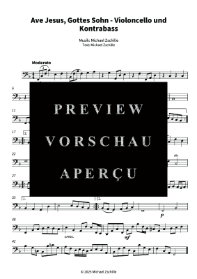 Ave Jesus, Gottes Sohn - Noten für Violoncello/Kontrabass Einzelstimme Michael Zschille