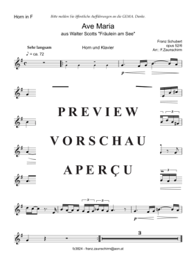Ave Maria (Horn Solo + Klavier-Playback) - Noten für Horn in F + Klavier Franz Schubert (Zaunschirm)
