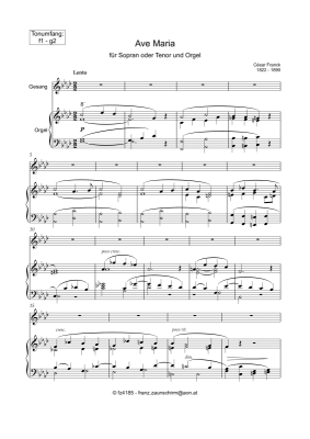 Ave Maria - Noten für Sopran/Tenor und Orgel César Franck