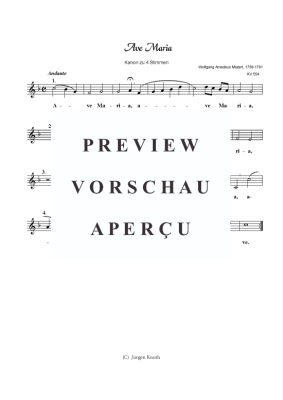 Ave Maria - Noten für Kanon 4-stimmig W. A. Mozart KV 554