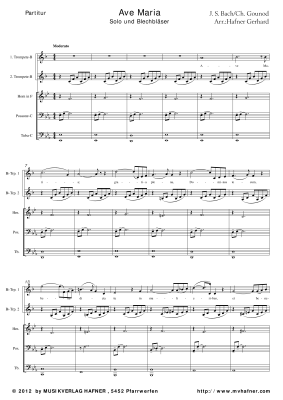 Ave Maria - Noten fĂŒr BlechblĂ€ser Quintett Bach/Gounod