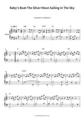 Baby´s Boat The Silver Moon Sailing In The Sky - Noten für Klavier Solo traditional