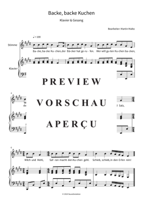 Backe, Backe Kuchen - Noten für Gesang + Klavier traditional