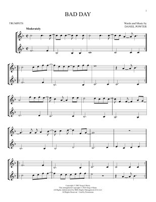 Bad Day - Noten für Trompete Daniel Powter
