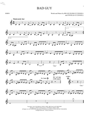 bad guy - Noten für Horn Billie Eilish