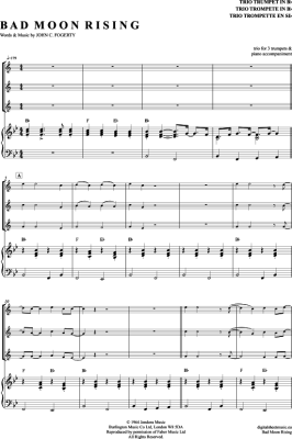 Bad Moon Rising - Noten für Trompeten Trio + Klavier Creedence Clearwater Revival