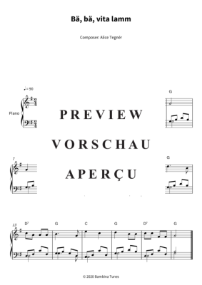 Bä, bä, vita lamm - Noten für Klavier Solo Alice Tegnér