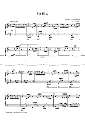 Bagatelle 'Für Elise' - Noten für Klavier Ludwig van Beethoven