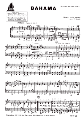 Bahama - Noten für Klavier und Gesang Will Meisel