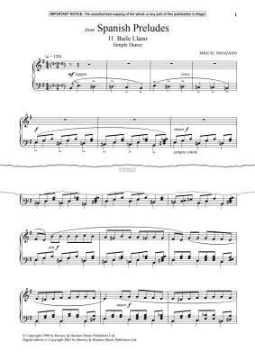 Baile Llano (Simple Dance) from Spanish Preludes - Noten für Klavier Miguel Manzano