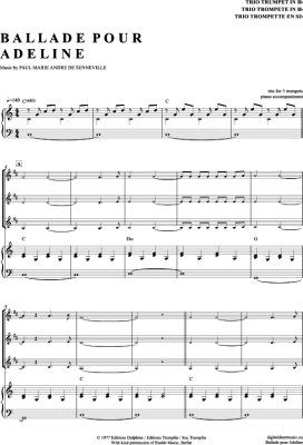 Ballade Pour Adeline - Noten für Trompeten Trio + Klavier Richard Clayderman