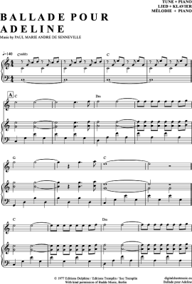 Ballade Pour Adeline - Noten für Klavier Solo + opt. Melodieinstrument Richard Clayderman