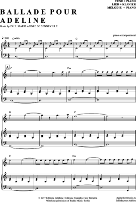 Ballade Pour Adeline - Noten für Gesang mit Klavierbegleitung Richard Clayderman