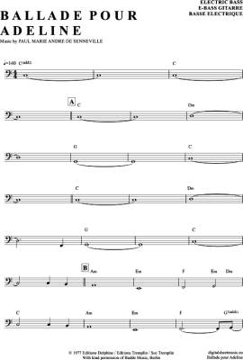 Ballade Pour Adeline - Noten für E-Bass Richard Clayderman