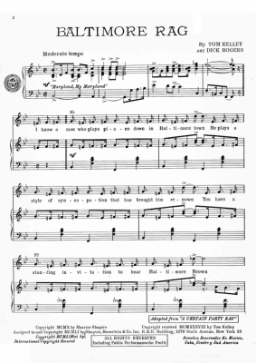 Baltimore Rag - Noten für Klavier und Gesang Tom Kelley
