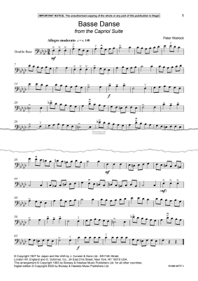 Basse Danse from 'The Capriol Suite' - Noten für Keyboard, Kontrabass Peter Warlock