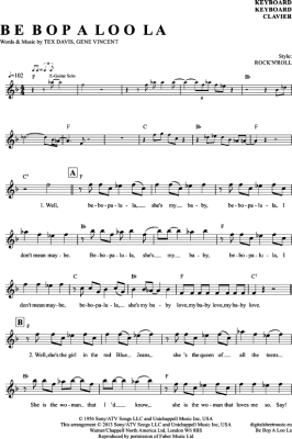 Be Bop A Lula - Noten für Keyboard Gene Vincent