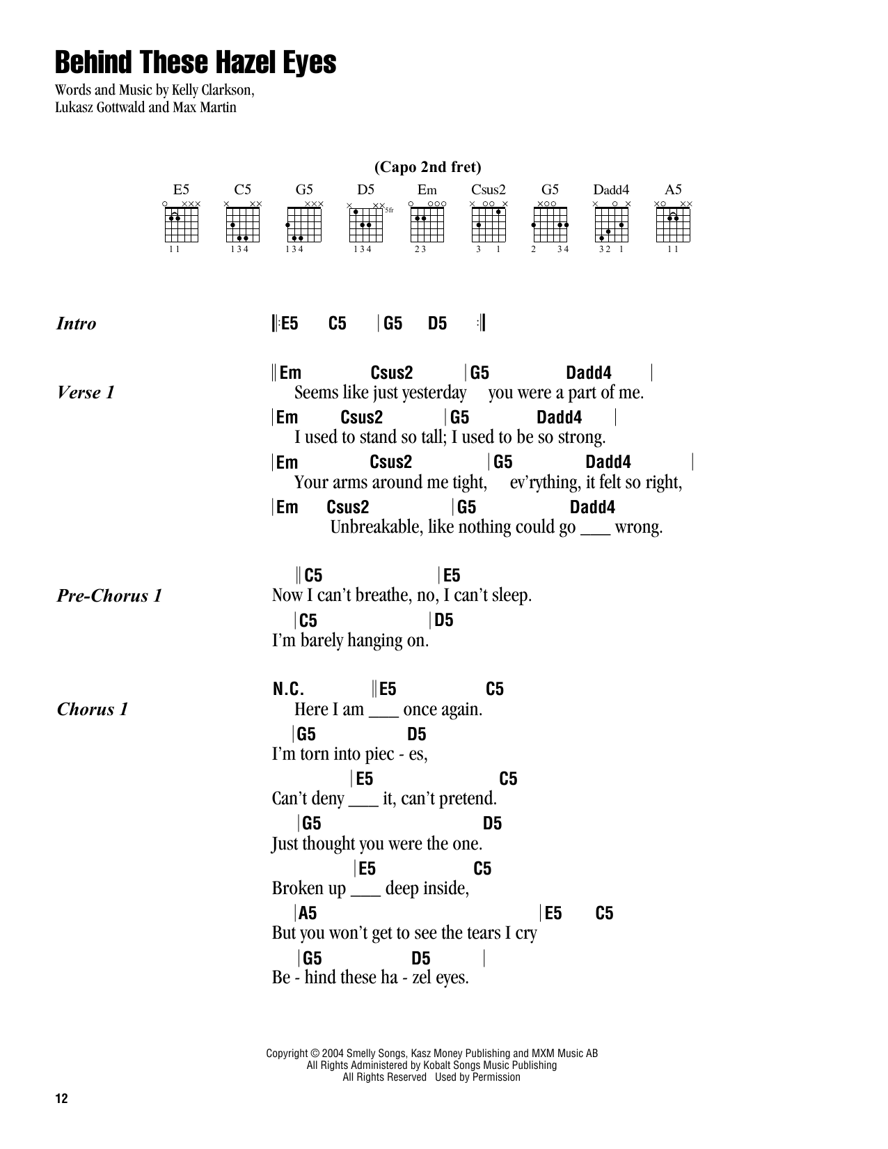 Behind These Hazel Eyes (Gitarrenakkorde/Songtexte)