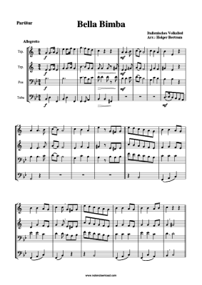Bella Bimba - Noten fĂŒr BlechblĂ€serquartett 2 Trompete B, Posaune/Tenorhorb, Tuba aus Italien