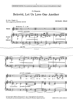 Belovèd, Let Us Love One Another - Noten für Gesang, Klavier, Orgel Michael Head