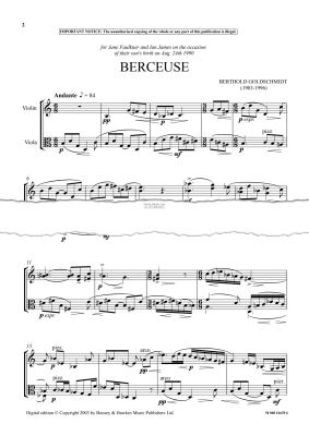 Berceuse - Noten für Viola, Violine Berthold Goldschmidt