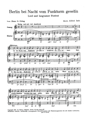 Berlin bei Nacht vom Funkturm gesehn - Noten für Klavier und Gesang Langsamer Foxtrott