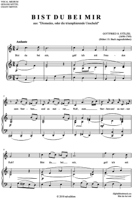 Bist du bei mir - Noten für Gesang + Klaviermittel C´ - F´´ Gottfried Heinrich Stölzel (1690-1749) / früher Bach zugeschrieben