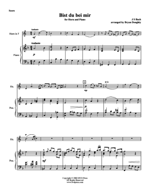 Bist du bei mir - Noten für Horn in F und Klavier J. S. Bach (arr. Doughty)