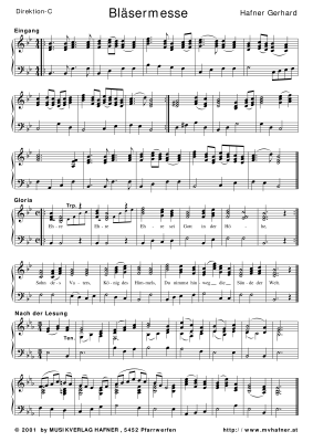 Bläsermesse für Blasorchester und Chor (ab Quartett spielbar) - Bläsermesse für Blasorchester (ab Quartett spielbar) Messteile: Eingang, Gloria, Nach der Lesung, Offertorium, Sanktus, Kommunion, Schlussgesang.