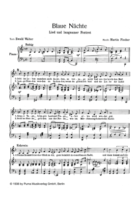 Blaue Nächte - Noten für Klavier und Gesang Lied und Foxtrott