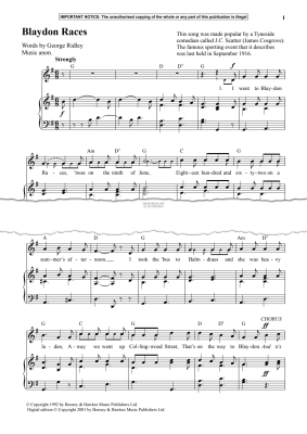 Blaydon Races - Noten für Gesang, Klavier Anon
